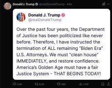 特朗普下令解雇所有剩余的“拜登时