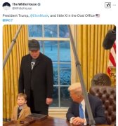 马斯克转发儿子和特朗普同框照 网友调侃:小朋